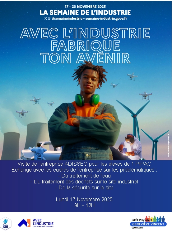 Pour la semaine de l'industrie 2025, les élèves de 1ière bac Pro PIPAC vont visiter le site industriel d'ADISSEO à Commentry.